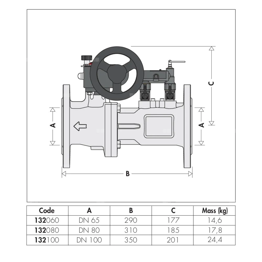 Zawór równoważący z przepływomierzem. Bezpośredni odczyt natężenia przepływu. Korpus z żeliwa DN 65 5÷24
