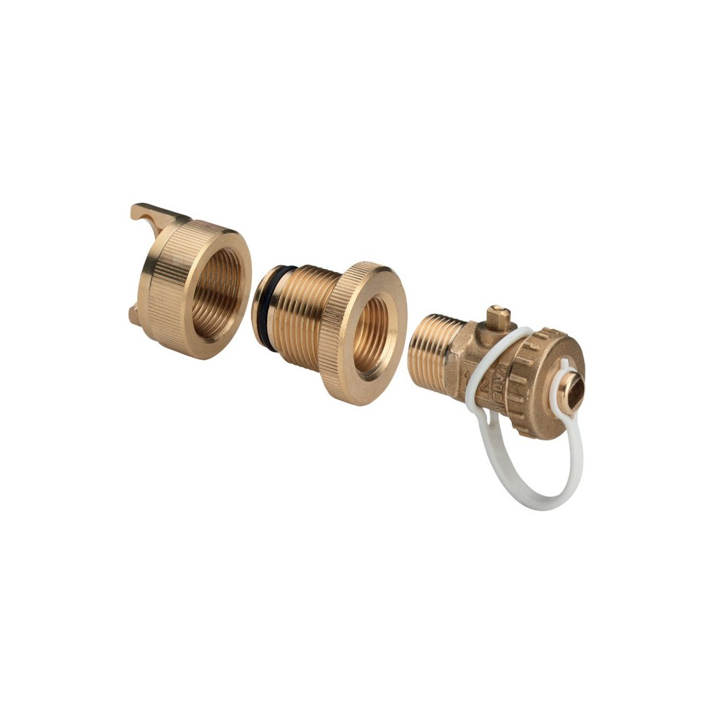 Korek do prób ciśnieniowych. Przeznaczenie: kontrola szczelności, przejściowo zamknięty odcinek rurociągu, mosiądz, dwuzłączka zaciskowa, przyłącze węża napełniającego. Wyposażenie: Zawór kulowy, nakrętka, nr wzoru 2269, nr kat. 140 557, d: 22