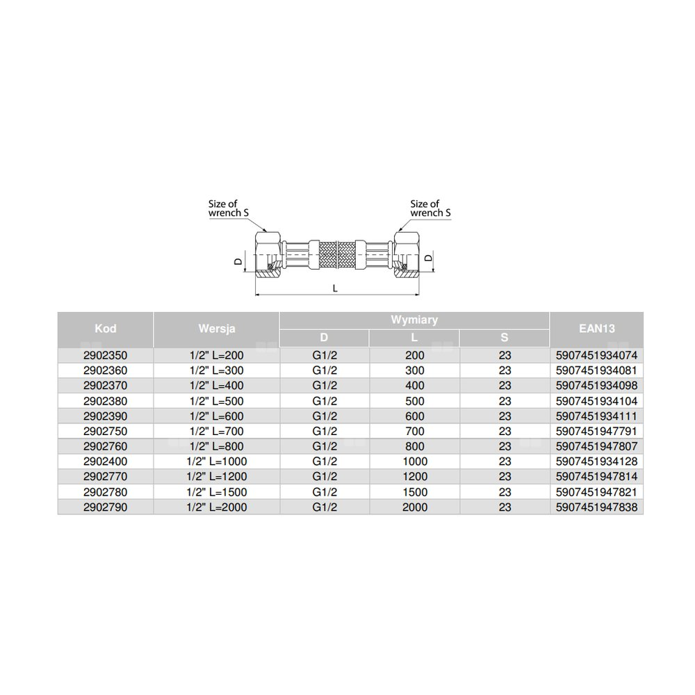 Wąż przyłączeniowy elastyczny VALVEX Viper Plus z oplotem (stal nierdzewna), GW x GW, 1/2'' x 1/2'', długość 2000 mm