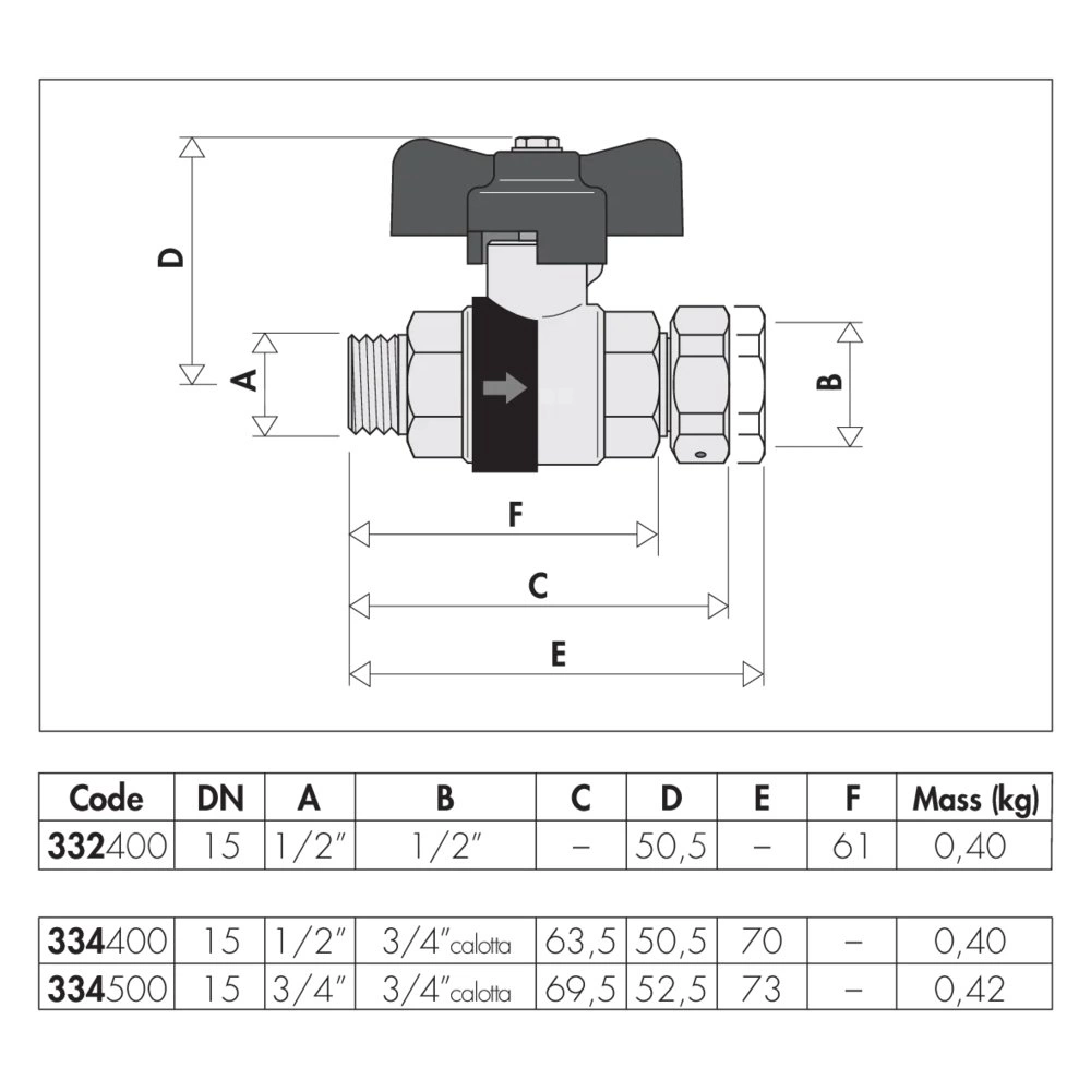 BALLSTOP - Zawór kulowy z wbudowanym zaworem zwrotnym z gwintem zewnętrzny i wewnętrznym. Pokrętło motylkowe 1/2" GZ x 1/2" GW