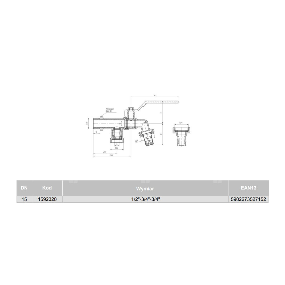 Zawór kulowy VALVEX Oligo Duo mosiądz niklowany czerpalny, PN10 1/2'' GZ x złączka do węża z zaworem odcinającym, uchwyt: dźwignia