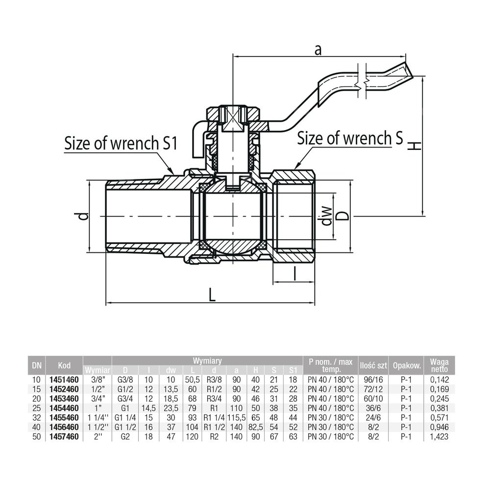 - Ciśnienie nominalne PN 40