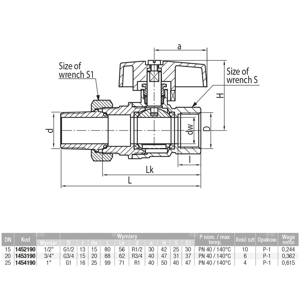 - Ciśnienie nominalne PN 40