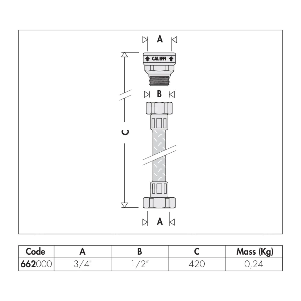 Bypass. Zestaw obejściowy różnicy ciśnienia ze stałą nastawą 20 kPa. (2000 mm słupa wody), z elastycznym wężem 3/4" GW nakrętka