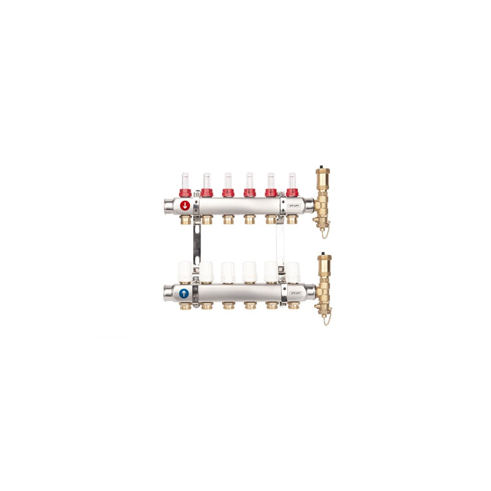 Rozdzielacz hydrauliczny VALVEX Base K5-8 stal nierdzewna 1'', odgałęzień: 8 (3/4'') + zawory termostatyczne + przepływomierze