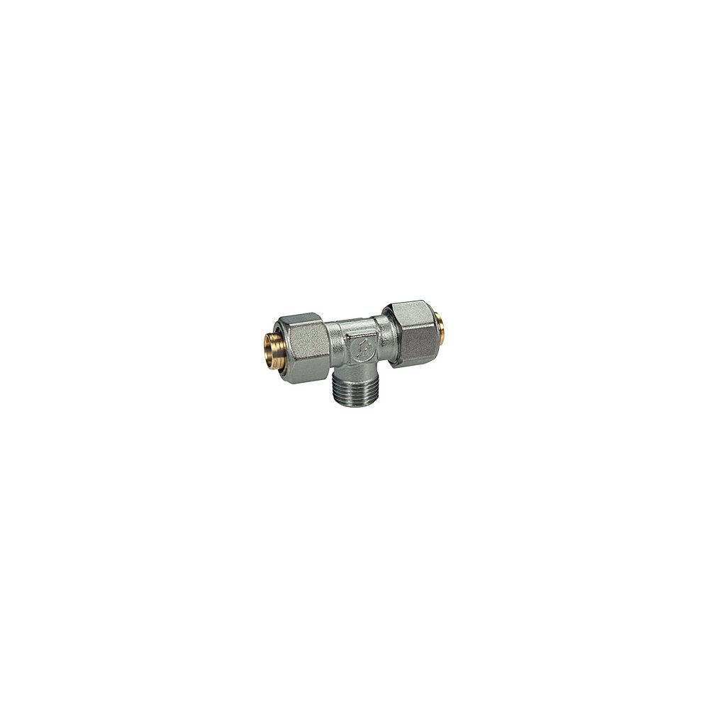 Trójnik GIACOMINI R568AM 90' mosiądz 16x2 x 1/2'' x 16x2 (końcówka wtykowa x GZ x końcówka wtykowa), kolor chrom