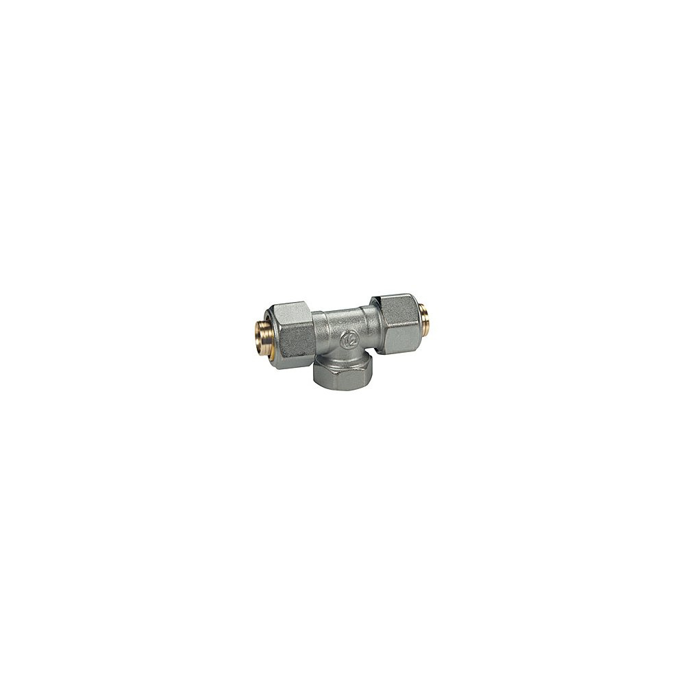 Trójnik GIACOMINI R569AM 90' mosiądz 20x2 x 3/4'' x 20x2 (końcówka wtykowa x GW x końcówka wtykowa), kolor chrom