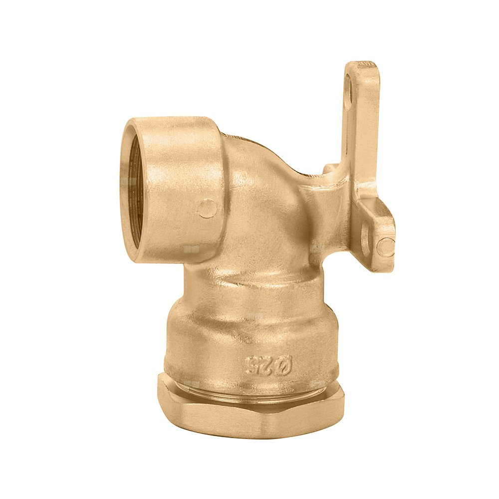 Kolanko z gwintem wewnętrznym do montażu na ścianie Do rur polietylenowych. Przyłącze: Ø 25, wlot. Przyłącze: Rp 3/4" (EN 10226-1) GW, wylot. Maksymalne ciśnienie pracy: 16 bar. Zakres temperatury medium: 0–40 °C. Materiał: mosiądz.