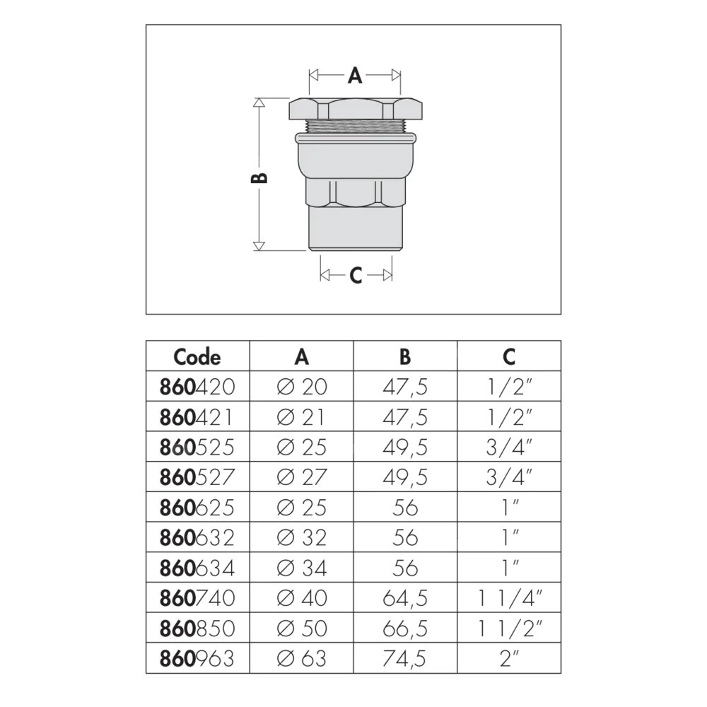 Złączka z gwintem wewnętrznym Do rur polietylenowych. Przyłącze: Ø 34, wlot. Przyłącze: G 1" (ISO 228-1) GW, wylot. Maksymalne ciśnienie pracy: 16 bar. Zakres temperatury medium: 0–40 °C. Materiał: mosiądz.