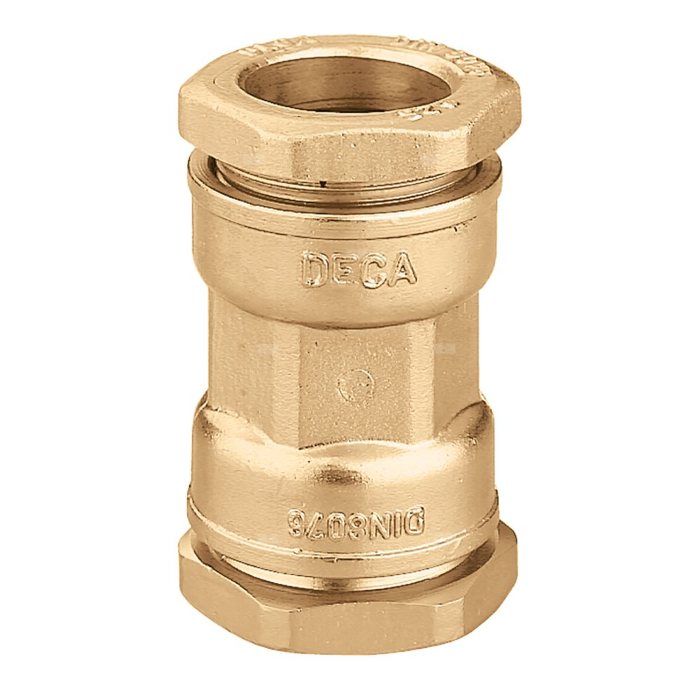 Złączka równoprzelotowa Do rur żelaznych. Przyłącze: Ø 21. Maksymalne ciśnienie pracy: 16 bar. Zakres temperatury medium: 0–40 °C. Materiał: mosiądz.