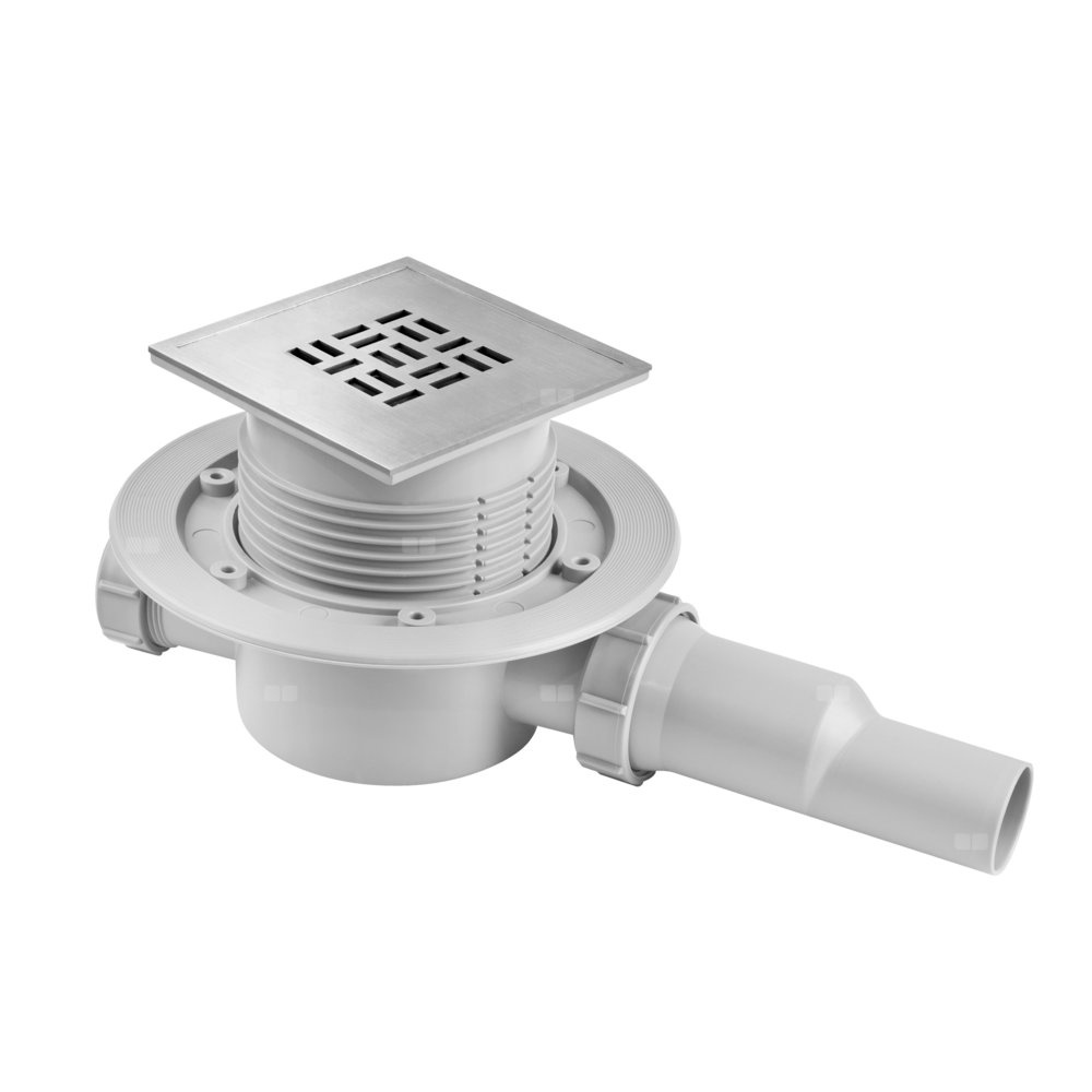 Wpust podłogowy wykonany z ABS z odpływem 40/50mm, czyszczony od góry z zaworem, kratka ze stali nierdzewnej115x115mm