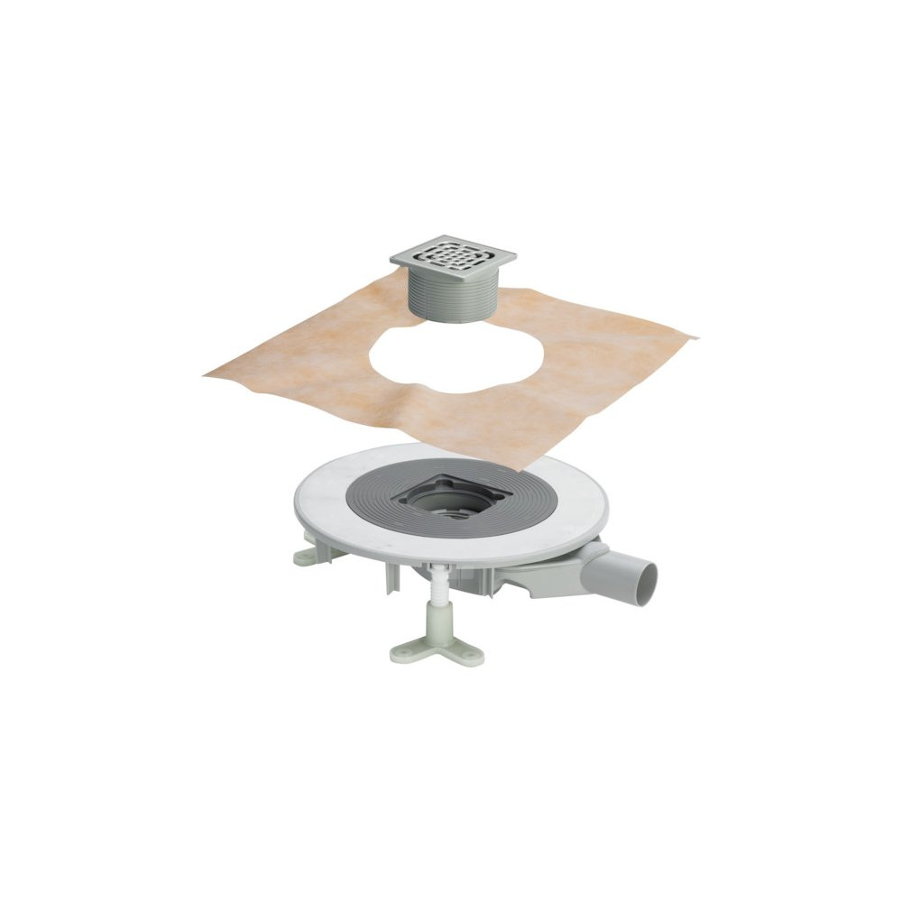 Wpust VIEGA 491420 z 1 przyłączem DN 50, odpływ pionowy, kratka 100x100mm stal