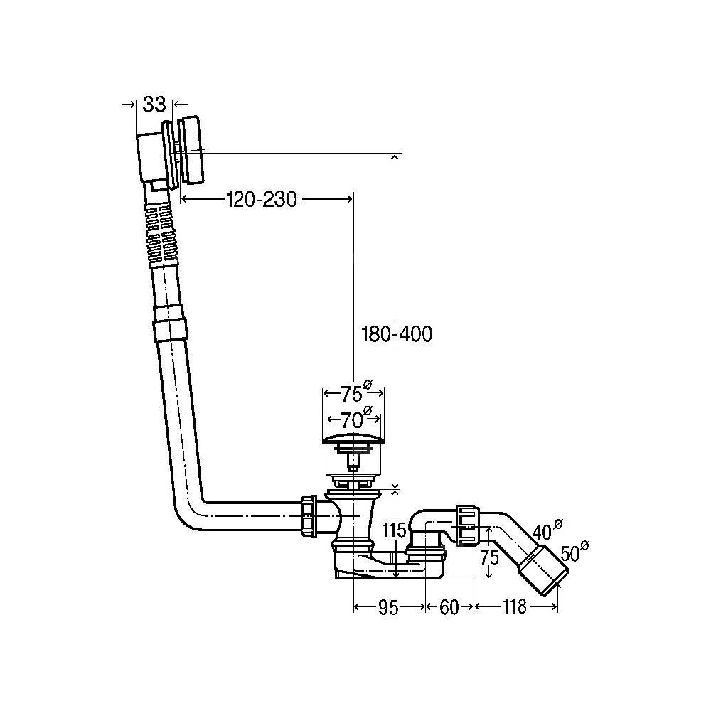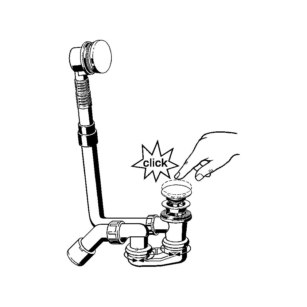 Komplet odpływowo-przelewowy. Wyposażenie: Technika zamykania na zatrzask, rozeta przelewowa, syfon, łuk odpływowy 45°. Wyposażenie: Technika zamykania na zatrzask, rozeta przelewowa, syfon, łuk odpływowy 45° bez możliwości klejenia. Dane techniczne: wysokość zamknięcia wodnego 50 mm, wydajność odpływu przy wysokości spiętrzenia 300 mm 0,92 l/s, wydajność przelewu wysokość spiętrzenia 60 mm nad środkiem otworu przelewowego 0,60 l/s, wg PN-EN 274, nr wzoru 6177.45, nr kat. 572 853,
