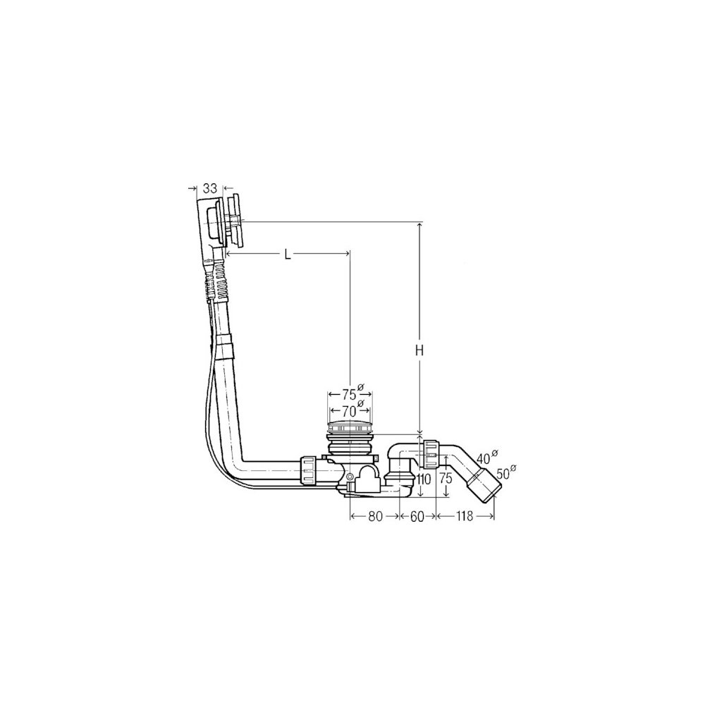 Multiplex Trio F-komplet odpływowo-przelewowy nr wzoru 6145.4 DN: 40/50 długość cięgna Bowdena: 560 L: 100–260 H: 180–350 wanna standardowa