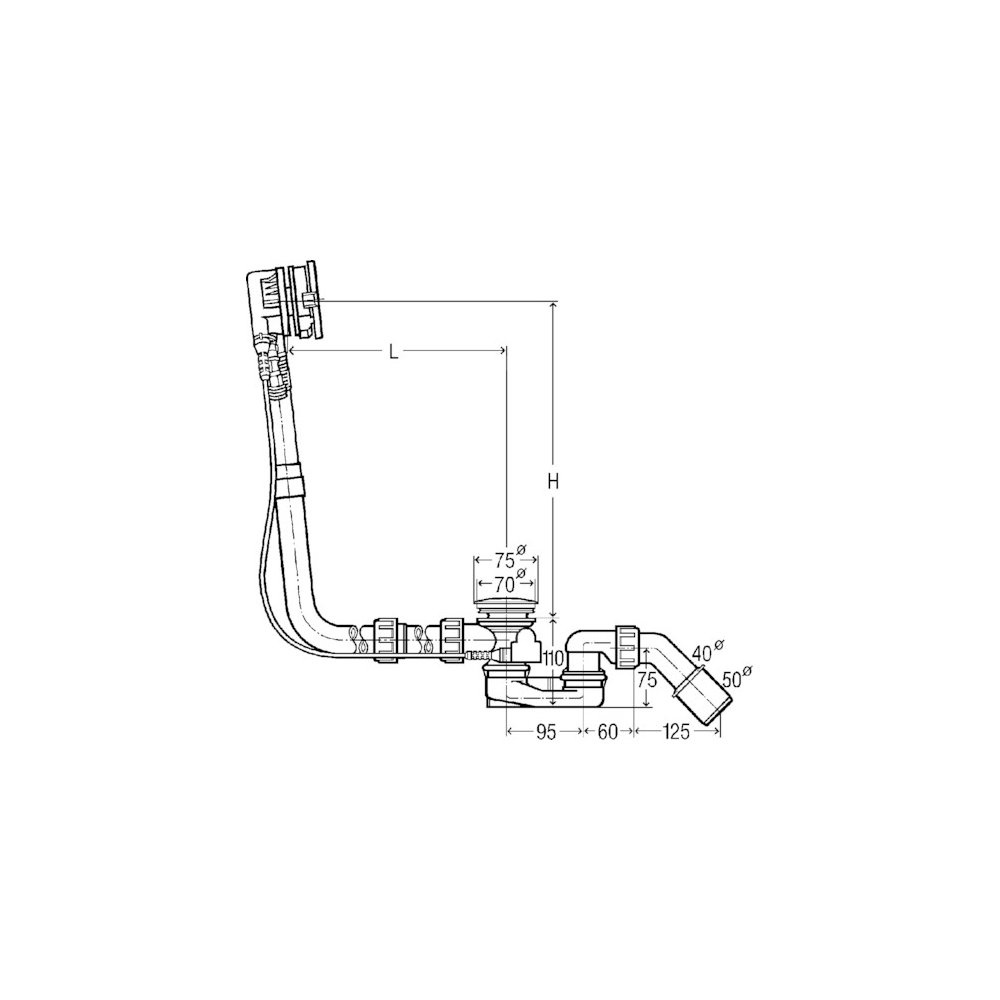Multiplex Trio-komplet odpływowo-przelewowy Visign MT5 nr wzoru 6161.70 DN: 40/50 długość cięgna Bowdena: 1070 L: 100–680 H: 180–480 wanna o długości niestandardowej do wanien z otworem odpływowym fi 52