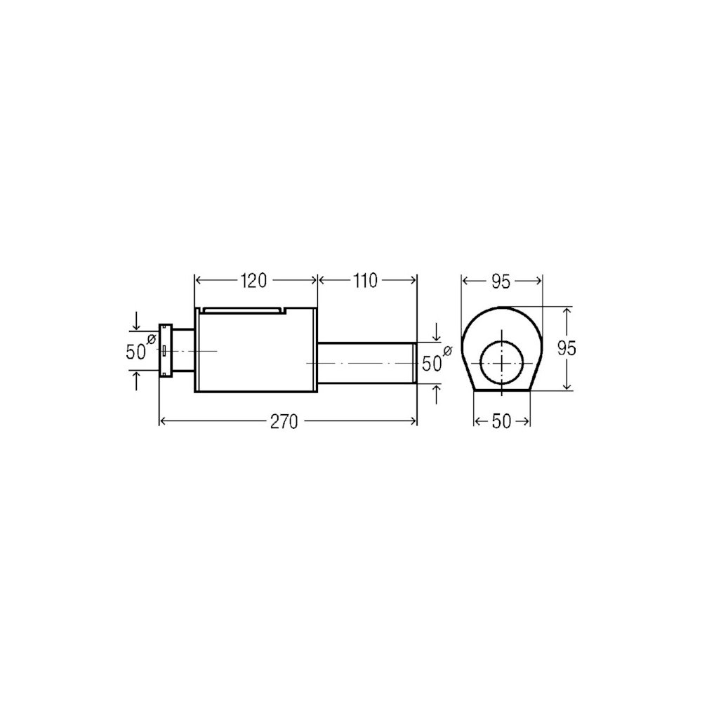 Sperrfix-zasuwa zwrotna, Typ 2. Przeznaczenie: instalacja kanalizacyjna bezfekaliowa, dopływ boczny, potrójne zabezpieczenie przeciwzalewowe (podwójne automatyczne i jedna ręczna klapa ręczna). Wyposażenie: 2 przegrody z klapą, uruchamianie ręczne, wg PN-EN 13564, nr wzoru 4995.3, nr kat. 607 166, DN: 50