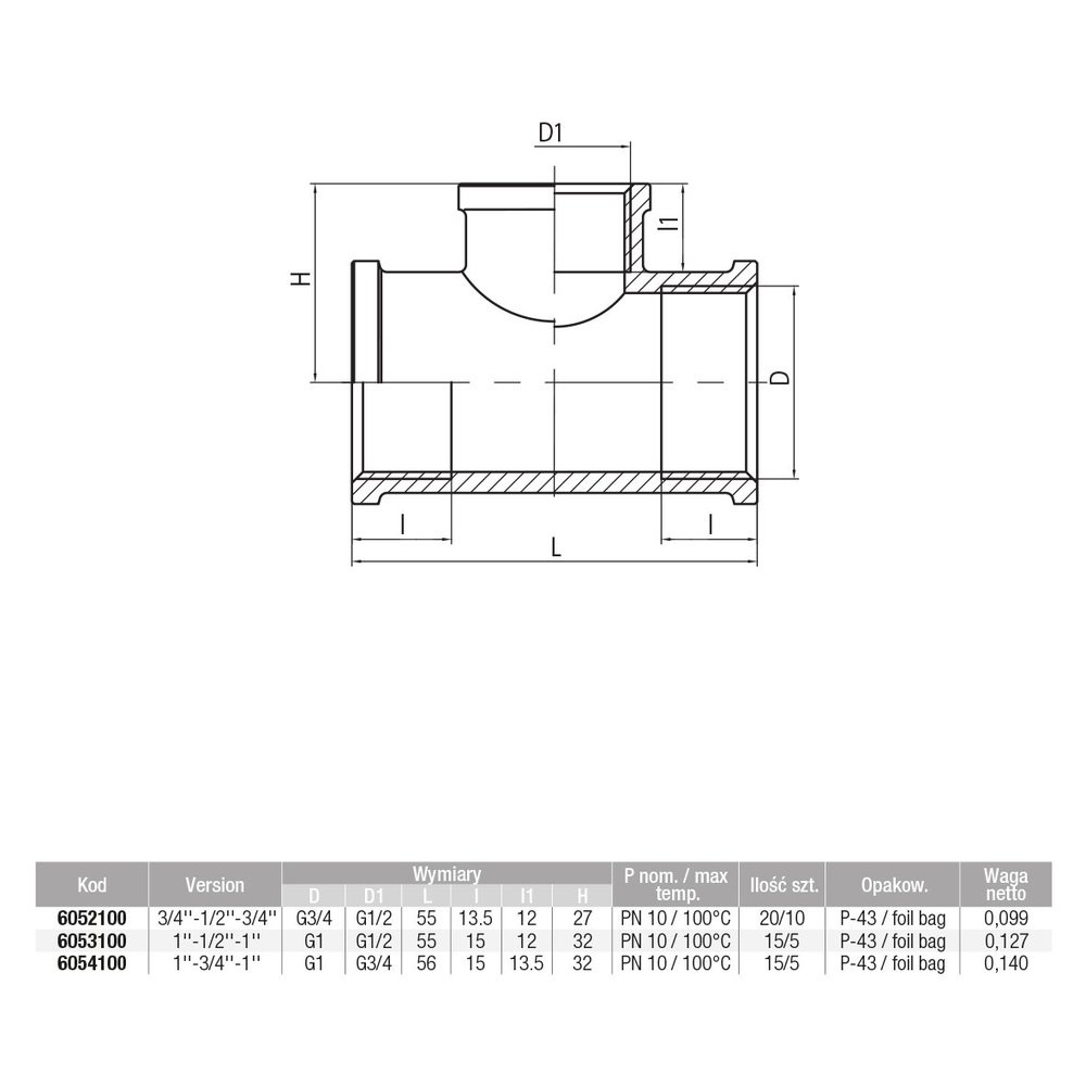 Znamionowa średnica wewnętrzna połączenia 1