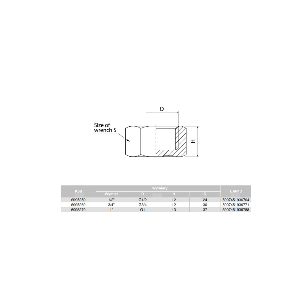 Znamionowa średnica wewnętrzna połączenia 1