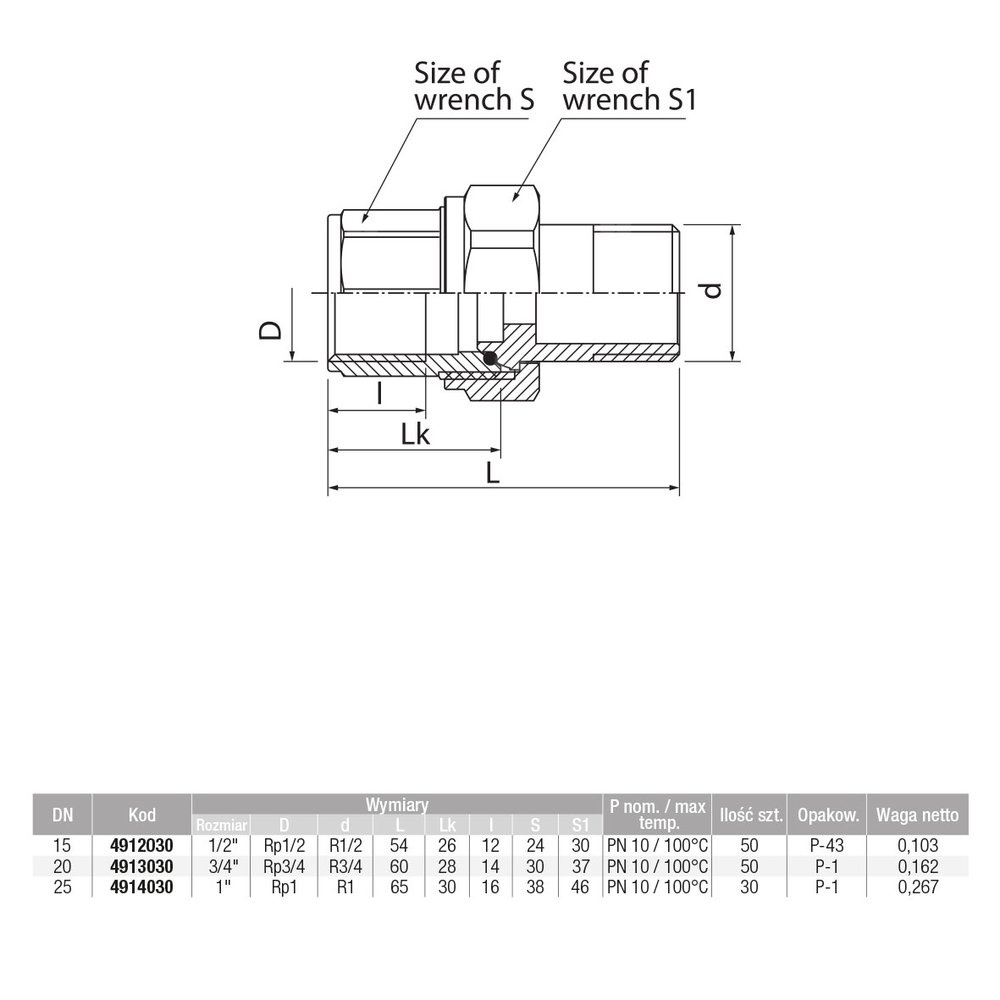Złączka (śrubunek) prosta niklowana (wersja długa)