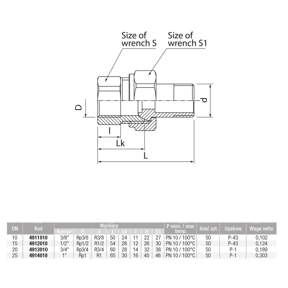 Złączka (śrubunek) prosta śrutowana (wersja długa)