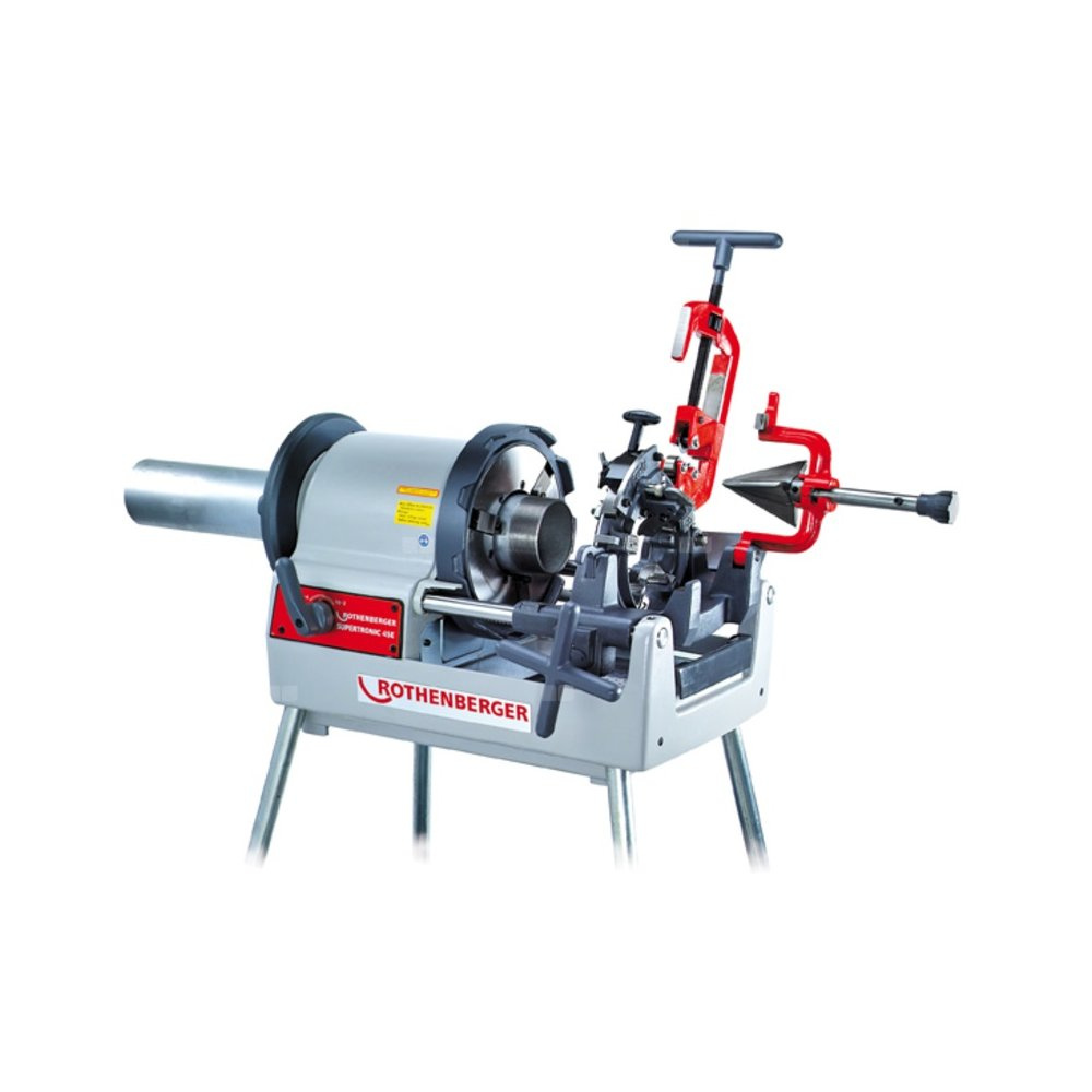 Gwintownica stacjonarna do 4" SUPERTRONIC 4 SE. W zestawie maszyna podstawowa, dwie głowice gwinciarskie, komplet narzynek 1/2 - 4", nogi. Dodatkowo: podstawa do rur, radełkownica, dodatkowe narzynki i 4 x olej w kanistrze. Szczegóły u naszych przedstawicieli.