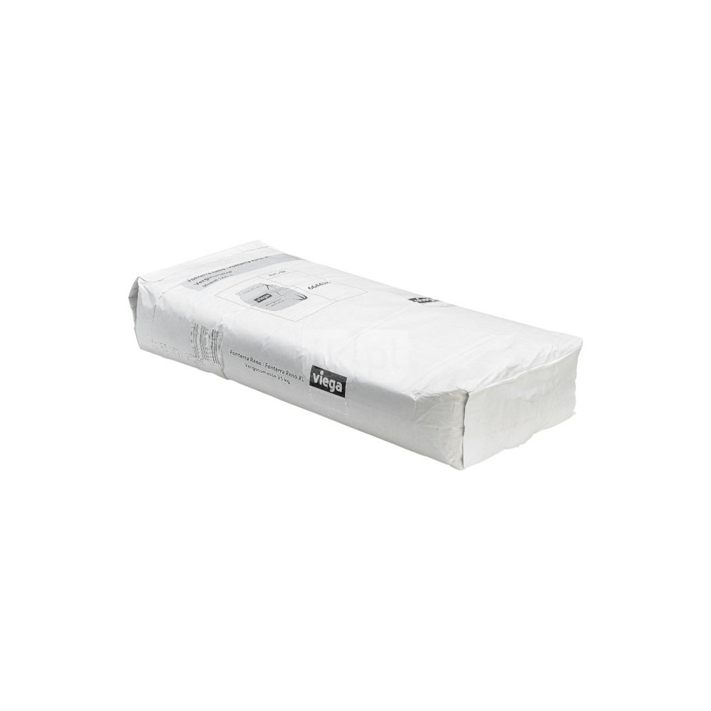 Fonterra Reno-masa szpachlowa. Przeznaczenie: płyta Reno, obszar wewnętrzny, grubość warstwy 2–10 mm, związany siarczan wapnia. Dane techniczne: zużycie 10 kg/m² przy grubości warstwy 3 mm, nr wzoru 1237.6, nr kat. 664 428, zawartość: 25 kg,