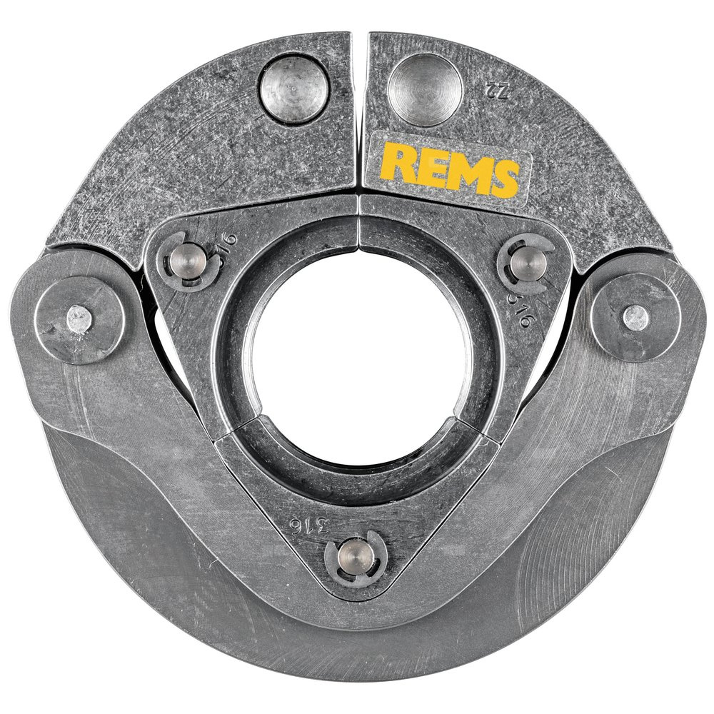 REMS Pierścień zaciskowy (PR-3S) z 3 segmentami dociskowymi, 2 prowadzone obrotowo, do wymagającego zaciskania przy dużych gabarytach. Optymalne zaciskanie poprzez promieniowo sterowany ruch segmentów zaciskowych.