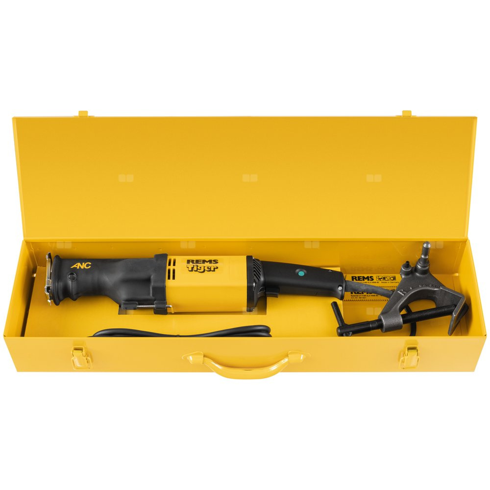Uniwersalna elektryczna pilarka szablasta do cięcia z uchwytem prowadzącym do 4” i z wolnej ręki do 6”, 250mm Sprawna przekładnia łożyskowana igiełkowo, zabezpieczona przed wniknięciem do wnętrza wody. Silnik uniwersalny 230V, 1050W. Uniwersalne i pewne mocowanie brzeszczotów firmy REMS i innych producentów. W komplecie m.in. uchwyt prowadzący do cięcia rur do 2”.