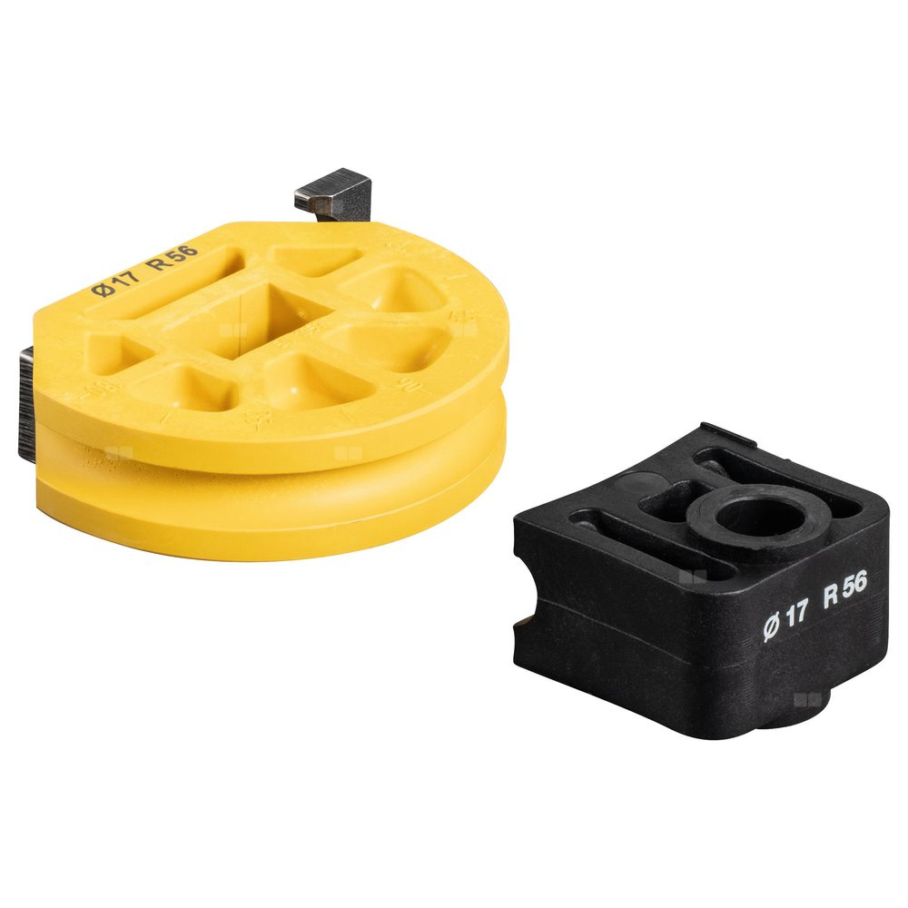 Segment gnący ze wzmocnionego włóknem szklanym poliamidu i ślizgi 180°, odporne na zniekształcenia i nacisk. Optymalne dopasowanie segmentu gięcia i elementu ślizgowego zapewnia gięcie określonego materiału bez pęknięć i fałd. Skala stopniowa 0 do 180° na każdym segmencie gnącym i znak na każdym elemencie dociskowym gwarantuje precyzyjne gięcie. Szybka wymiana segmentu gnącego i elementu dociskowego.