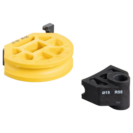 Segment gnący ze wzmocnionego włóknem szklanym poliamidu i ślizgi 180°, odporne na zniekształcenia i nacisk. Optymalne dopasowanie segmentu gięcia i elementu ślizgowego zapewnia gięcie określonego materiału bez pęknięć i fałd. Skala stopniowa 0 do 180° na każdym segmencie gnącym i znak na każdym elemencie dociskowym gwarantuje precyzyjne gięcie. Szybka wymiana segmentu gnącego i elementu dociskowego.