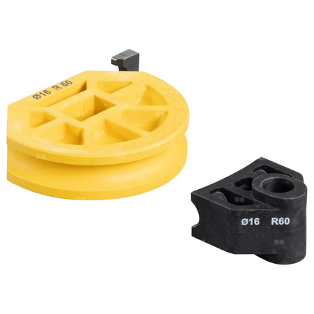 Segment gnący ze wzmocnionego włóknem szklanym poliamidu i ślizgi 180°, odporne na zniekształcenia i nacisk. Optymalne dopasowanie segmentu gięcia i elementu ślizgowego zapewnia gięcie określonego materiału bez pęknięć i fałd. Skala stopniowa 0 do 180° na każdym segmencie gnącym i znak na każdym elemencie dociskowym gwarantuje precyzyjne gięcie. Szybka wymiana segmentu gnącego i elementu dociskowego.