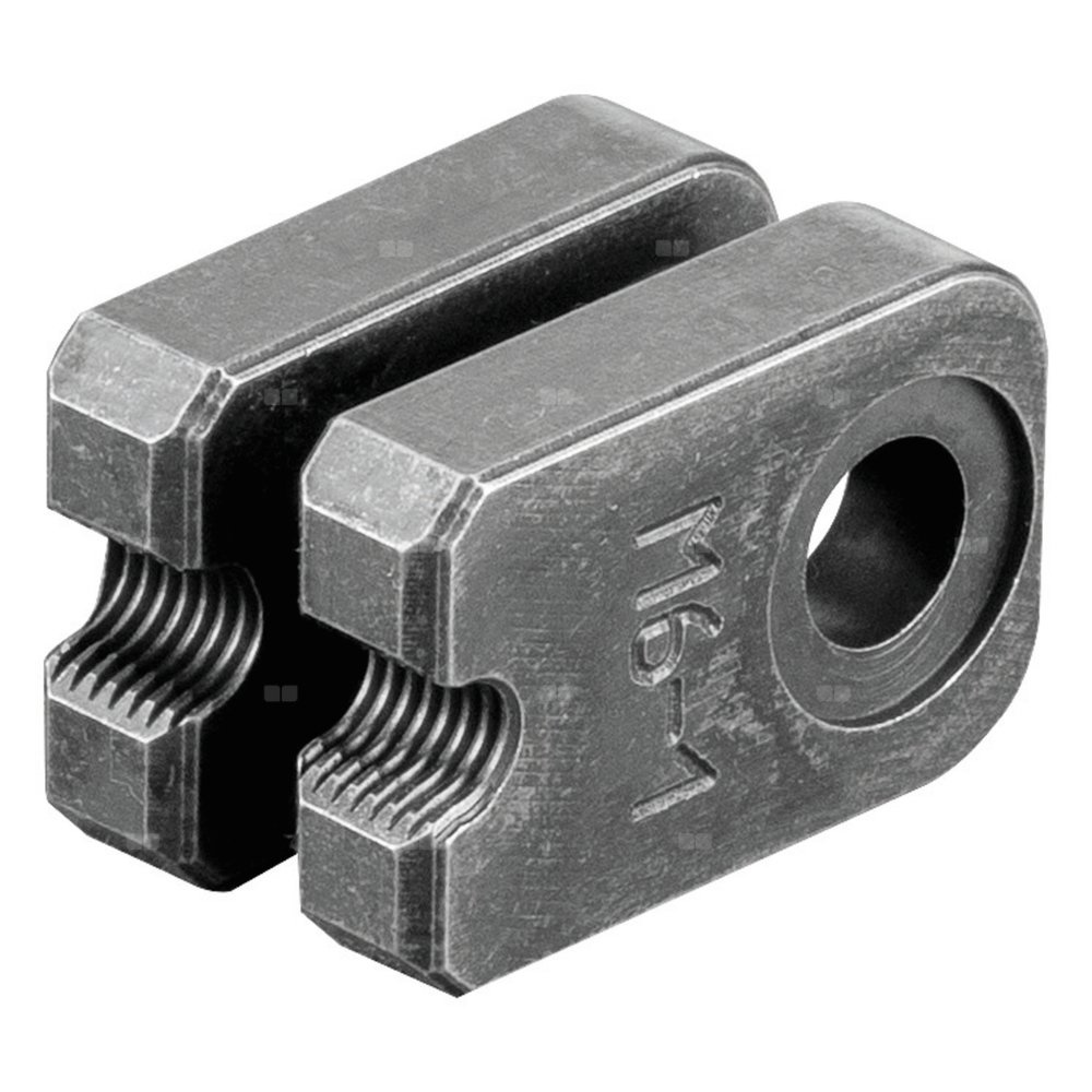 Wkładki do cięcia M z konturem gwintu obrobionym z dużą precyzja na centrach obróbkowych CNC w celu dokładnego prowadzenia pręta gwintowanego podczas przebigu cięcia. Elementy cęgów, wkładki do cięcia i specjalnie ukształtowane hartowane krawędzie nożyc, dokladnie dopasowane, w celu otrzymania przecięć bez gratu.