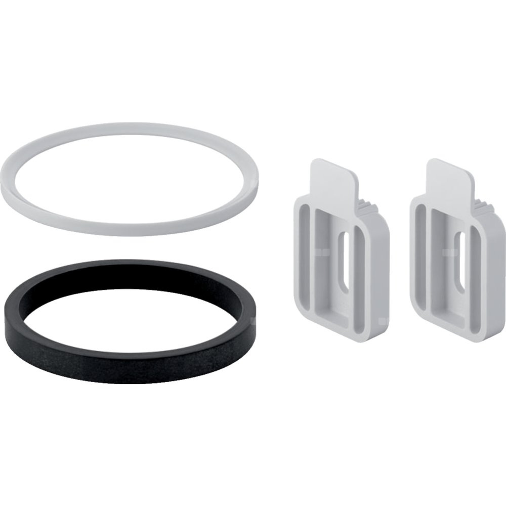 2 zaczepy do zawieszania 2 kołki rozporowe Uszczelka kompresyjna z EPDM Pierścień dociskowy 2 wkręty do drewna