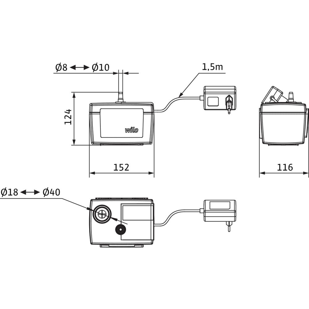 *Przyłącze gwintowane po stronie ssawnej: Ø 18-40mm