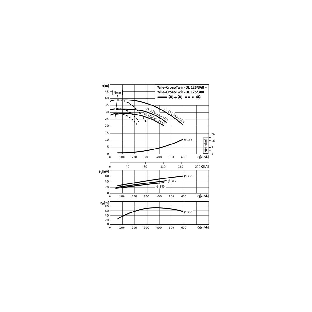 Pompa obiegowa WILO CronoTwin-DL 125/340-30/4-IE3 typu in-line z silnikiem znormalizowanym 50 Hz, moc silnika 30kW 54.3 A 1450 obr/min, wlot Kołnierz DN 125