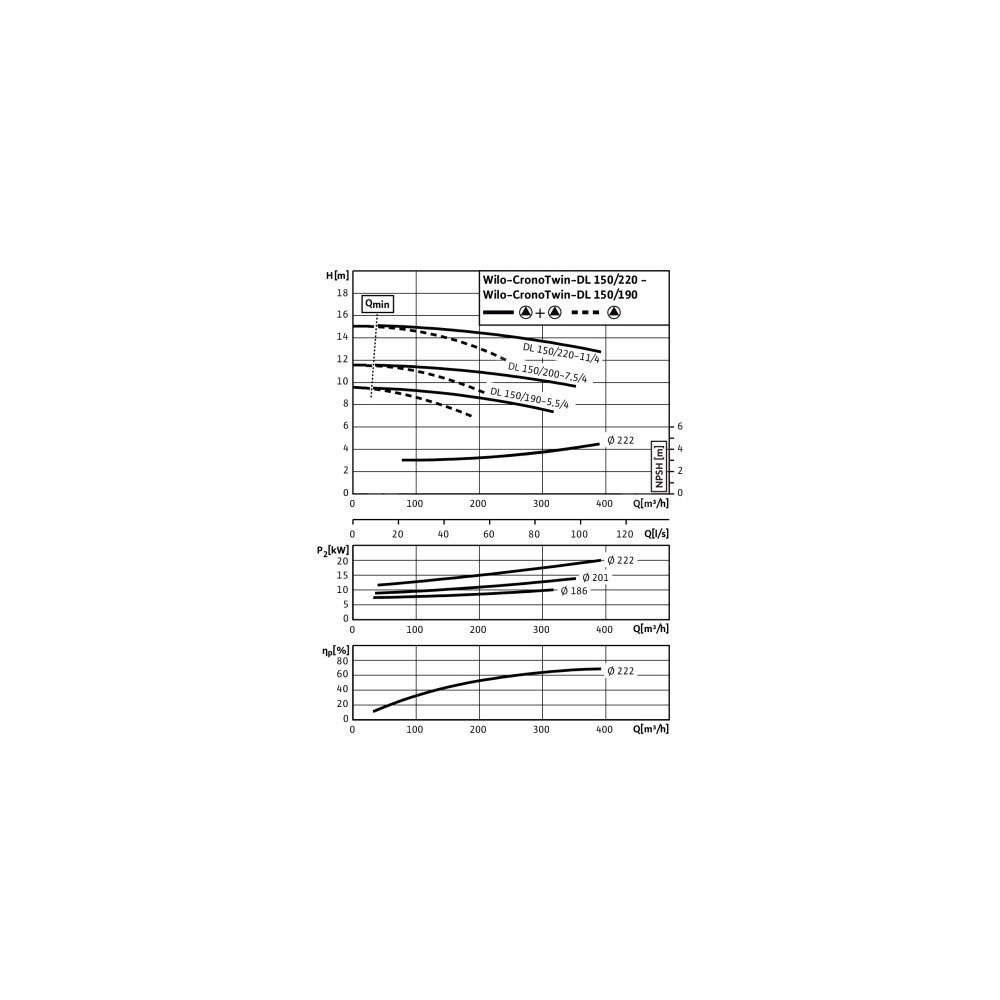 Pompa obiegowa WILO CronoTwin-DL 150/200-7,5/4-IE3 typu in-line z silnikiem znormalizowanym 50 Hz, moc silnika 7.5kW 14.9 A 1450 obr/min, wlot Kołnierz DN 150