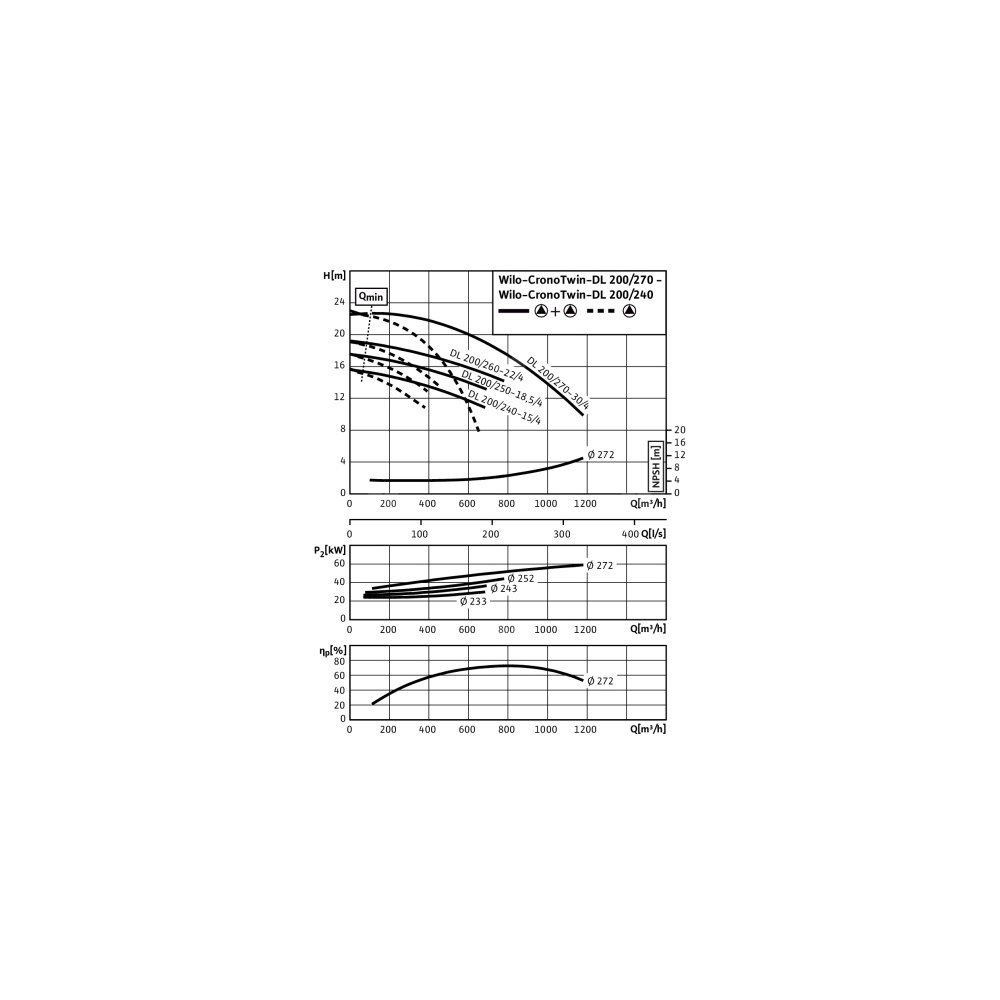 Pompa obiegowa WILO CronoTwin-DL 200/250-18,5/4-IE3 typu in-line z silnikiem znormalizowanym 50 Hz, moc silnika 18.5kW 34.3 A 1450 obr/min, wlot Kołnierz DN 200
