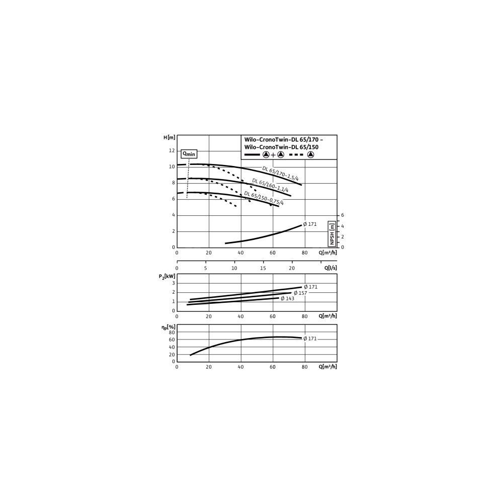 Pompa obiegowa WILO CronoTwin-DL 65/170-1,1/4-IE3 typu in-line z silnikiem znormalizowanym 50 Hz, moc silnika 1.1kW 2.3 A 1450 obr/min, wlot Kołnierz DN 65