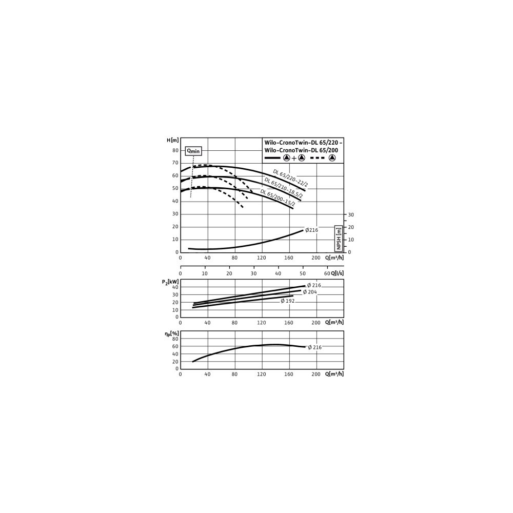 Pompa obiegowa WILO CronoTwin-DL 65/220-22/2-IE3 typu in-line z silnikiem znormalizowanym 50 Hz, moc silnika 22kW 38 A 2900 obr/min, wlot Kołnierz DN 65