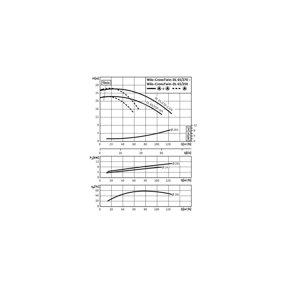 Pompa obiegowa WILO CronoTwin-DL 65/270-5,5/4-IE3 typu in-line z silnikiem znormalizowanym 50 Hz, moc silnika 5.5kW 11.1 A 1450 obr/min, wlot Kołnierz DN 65