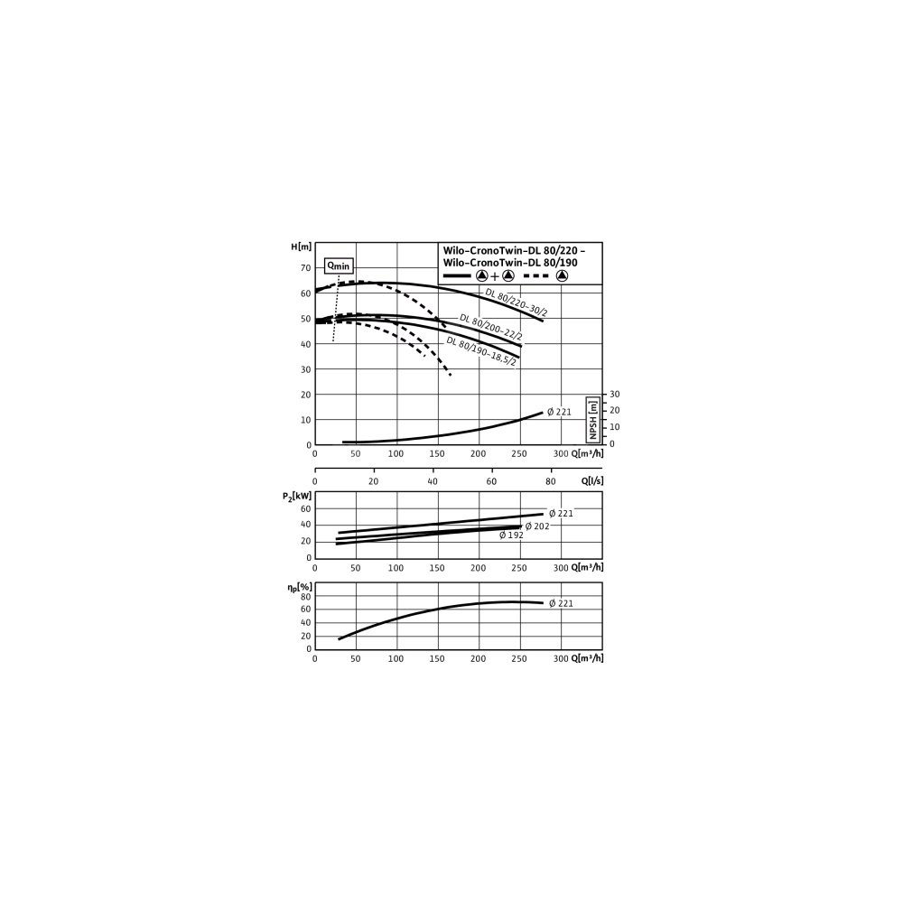 Pompa obiegowa WILO CronoTwin-DL 80/190-15/2-IE3 typu in-line z silnikiem znormalizowanym 50 Hz, moc silnika 15kW 26.8 A 2900 obr/min, wlot Kołnierz DN 80