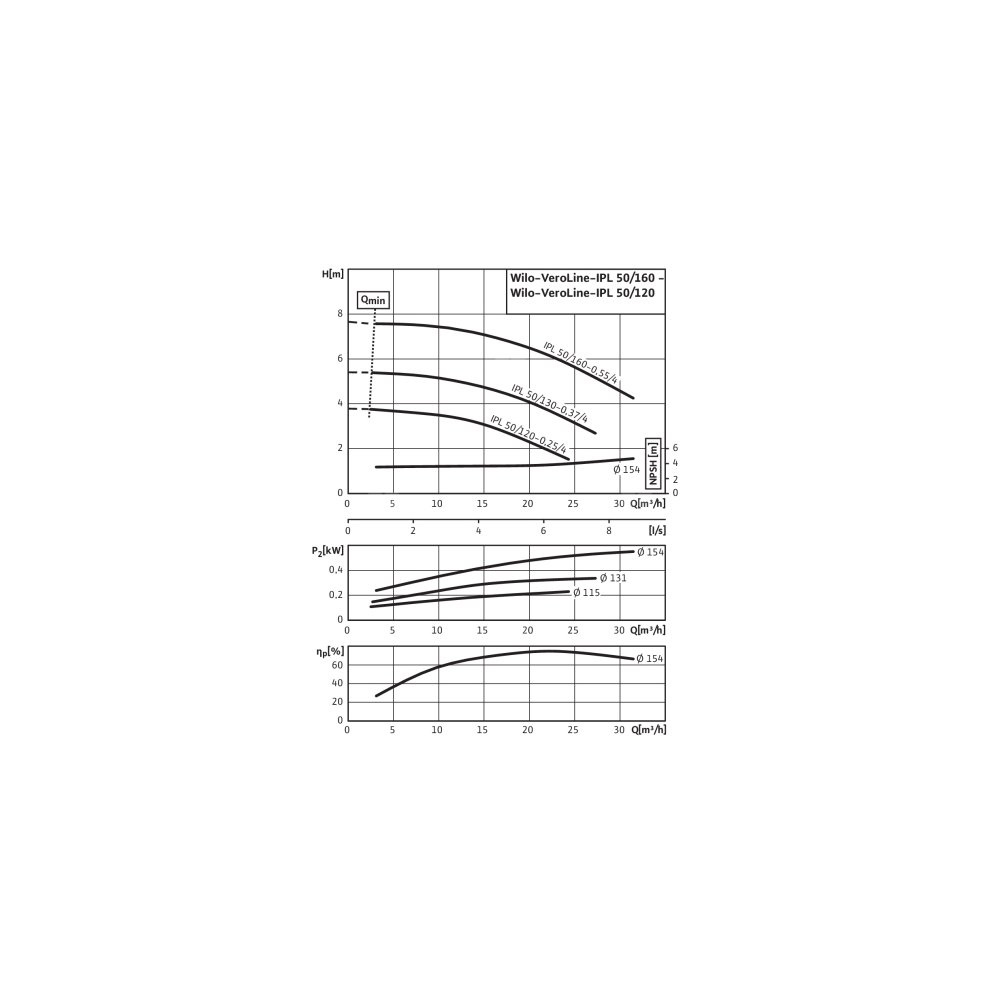 Pompa obiegowa WILO VeroLine-IPL 50/130-0,37/4 typu in-line z silnikiem znormalizowanym 50 Hz, moc silnika 0.37kW 1.06 A 1450 obr/min, wlot Kołnierz DN 50