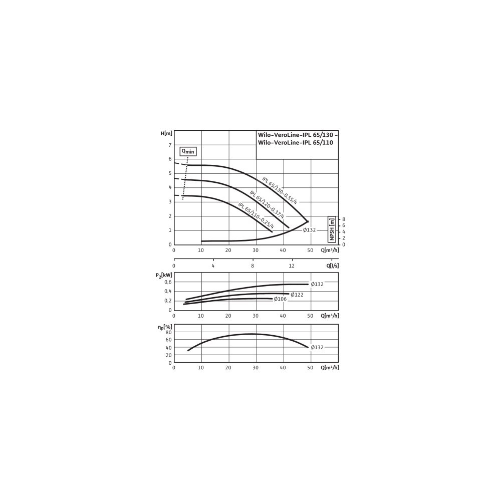 Pompa obiegowa WILO VeroLine-IPL 65/120-0,37/4 typu in-line z silnikiem znormalizowanym 50 Hz, moc silnika 0.37kW 1.06 A 1450 obr/min, wlot Kołnierz DN 65