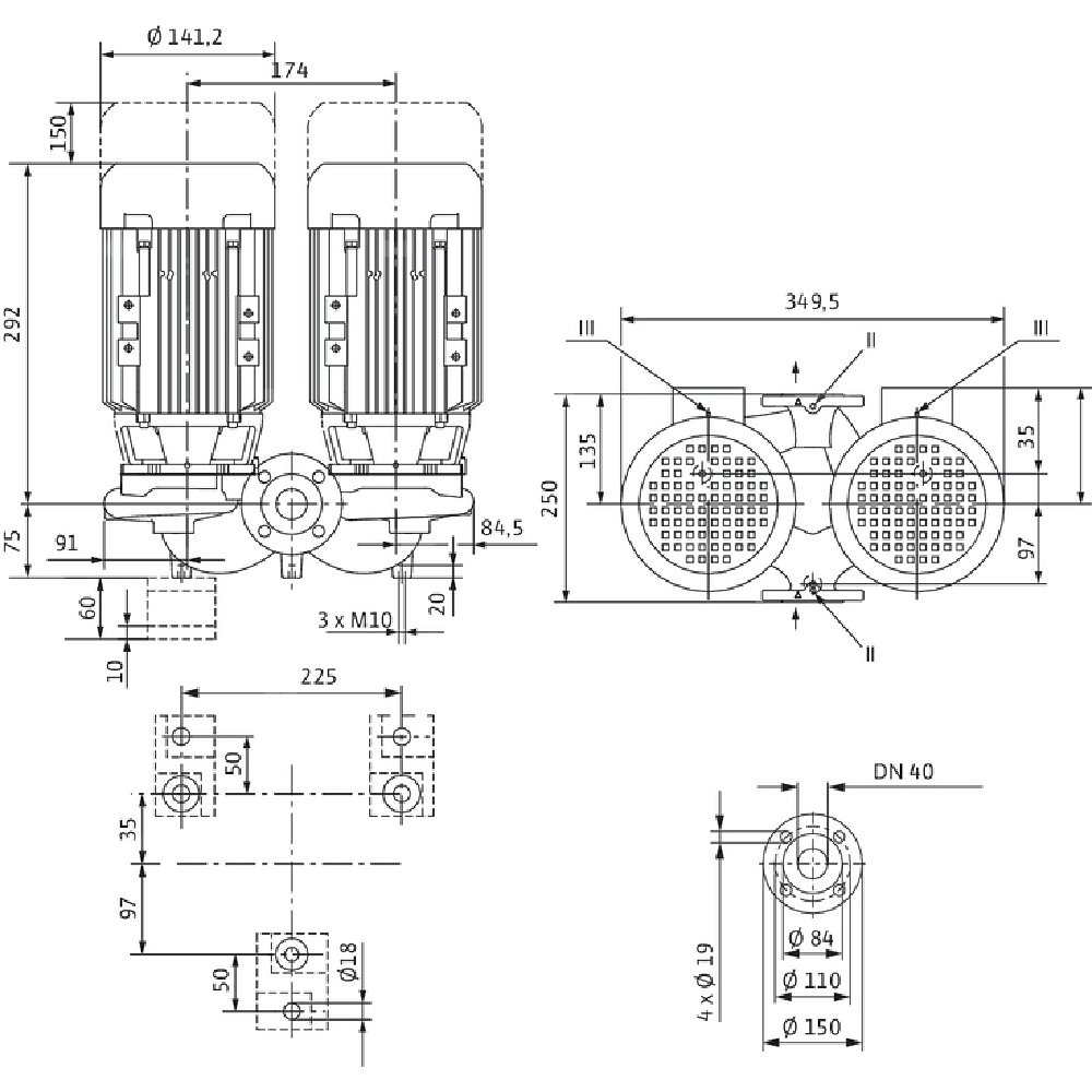 Pompa obiegowa WILO VeroTwin-DPL 40/75-0,12/2 typu in-line z silnikiem znormalizowanym 50 Hz, moc silnika 0.12kW 0.33 A 2780 obr/min, wlot Kołnierz DN 40