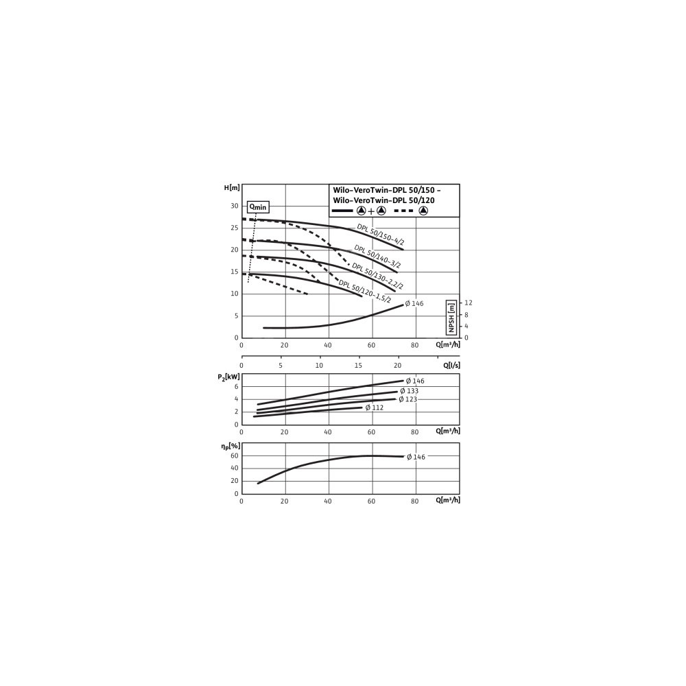 Pompa obiegowa WILO VeroTwin-DPL 50/140-3/2-IE3 typu in-line z silnikiem znormalizowanym 50 Hz, moc silnika 3kW 6.15 A 2900 obr/min, wlot Kołnierz DN 50