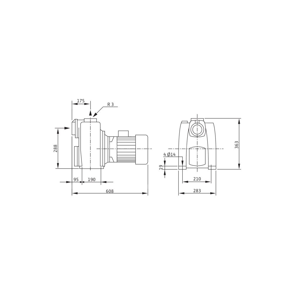 Samozasysająca pompa do wody brudnej, do ustawienia na sucho w sposób przenośny i stacjonarny, do tłoczenia wody czystej i lekko zanieczyszczonej. Układ hydrauliczny z poziomym przyłączem ssącym i pionowym przyłączem tłocznym z przyłączem gwintowanym. Wirnik i korpus pompy mogą być czyszczone przez otwór rewizyjny w hydraulice. Stosowane wirniki to wirniki wielokanałowe. Układ hydrauliczny i wirnik z żeliwa szarego. Napęd następuje poprzez silnik znormalizowany w wersji na prąd trójfazowy z korpusem silnika z aluminium. Kabel zasilający musi zapewnić Użytkownik. Hydraulika i silnik posiadają wspólny wał. Stabilność montażu zapewnia zastosowanie mało podatnej na drgania płyty podstawy.