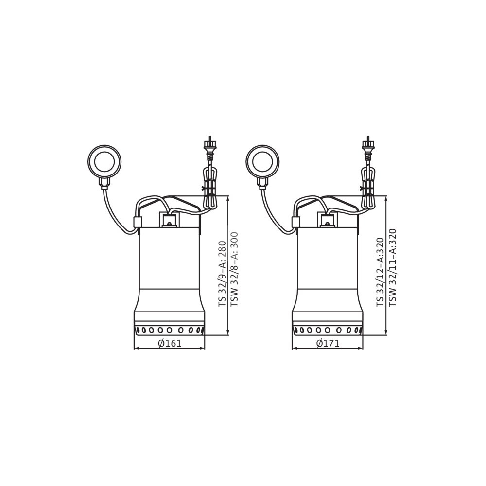Całkowicie zanurzona pompa zatapialna do wody zanieczyszczonej, do przenośnego ustawienia mokrego, do tłoczenia ścieków bez fekaliów lub wody zanieczyszczonej. Wirnik z tworzywa sztucznego, hydraulika i korpus silnika ze stali nierdzewnej. Hydraulika ze zintegrowanym urządzeniem zawirowującym, pionowym przyłączem gwintowanym ze zintegrowanym zabezpieczeniem przed przepływem zwrotnym i wirnikiem o swobodnym przepływie. Silnik na prąd zmienny z chłodzeniem płaszczowym (do chłodzenia wykorzystywane jest przetłaczane medium między korpusem pompy i korpusem silnika), zintegrowanym kondensatorem roboczym i termiczną kontrolą silnika przed przeciążeniem z automatycznym ponownym włączeniem. Kabel zasilający o długości z zamontowaną wtyczką z uziemieniem i wyłącznikiem pływakowym do automatycznego sterowania poziomem. Do uszczelnienia po stronie medium służy uszczelnienie mechaniczne, natomiast po stronie silnika pierścień uszczelniający wału.