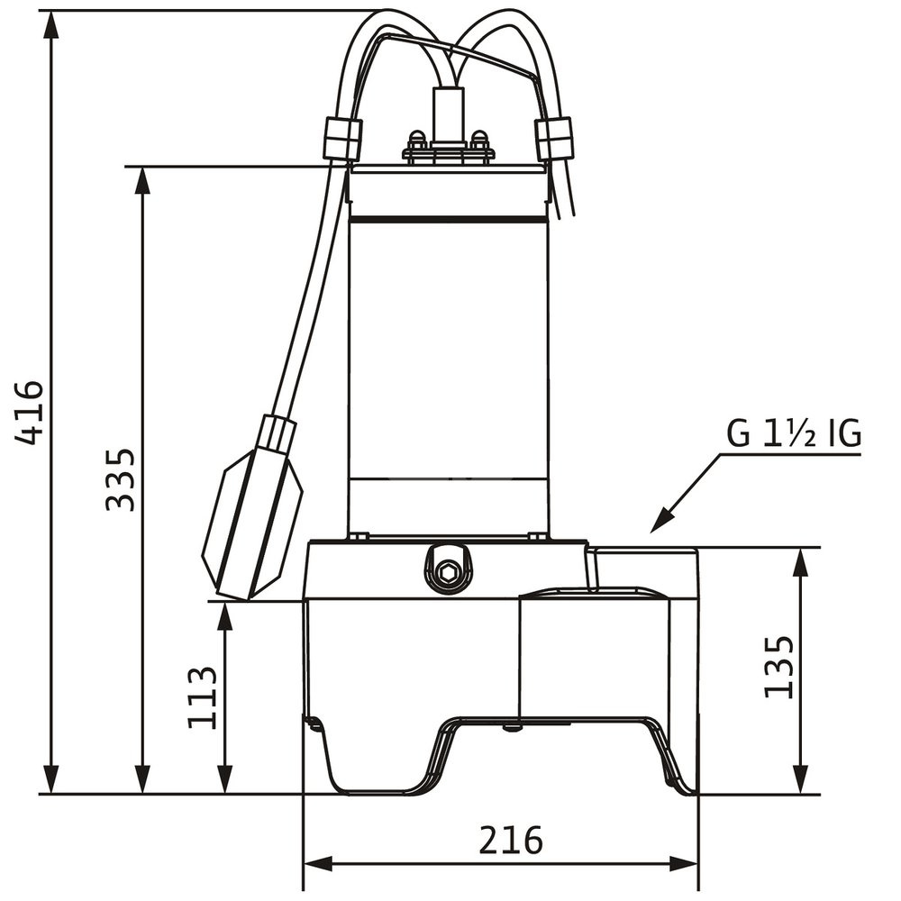 Całkowicie zanurzona pompa zatapialna do ścieków do stacjonarnego i przenośnego ustawienia mokrego, do tłoczenia ścieków bez fekaliów i wody zanieczyszczonej. Korpus hydrauliczny z żeliwa szarego, wirnik z tworzywa sztucznego, korpus silnika ze stali nierdzewnej. Hydraulika z pionowym gwintowanym przyłączem tłocznym i wirnikiem o swobodnym przepływie. Chłodzony powierzchniowo silnik prądu zmiennego ze zintegrowanym kondensatorem roboczym i automatyczną termiczną kontrolą silnika. Kabel zasilający o długości z zamontowaną wtyczką z uziemieniem i wyłącznikiem pływakowym do automatycznego sterowania poziomem. Do uszczelnienia po stronie medium służy uszczelnienie mechaniczne, natomiast po stronie silnika pierścień uszczelniający wału. Wszystkie urządzenia bez certyfikatu Ex.