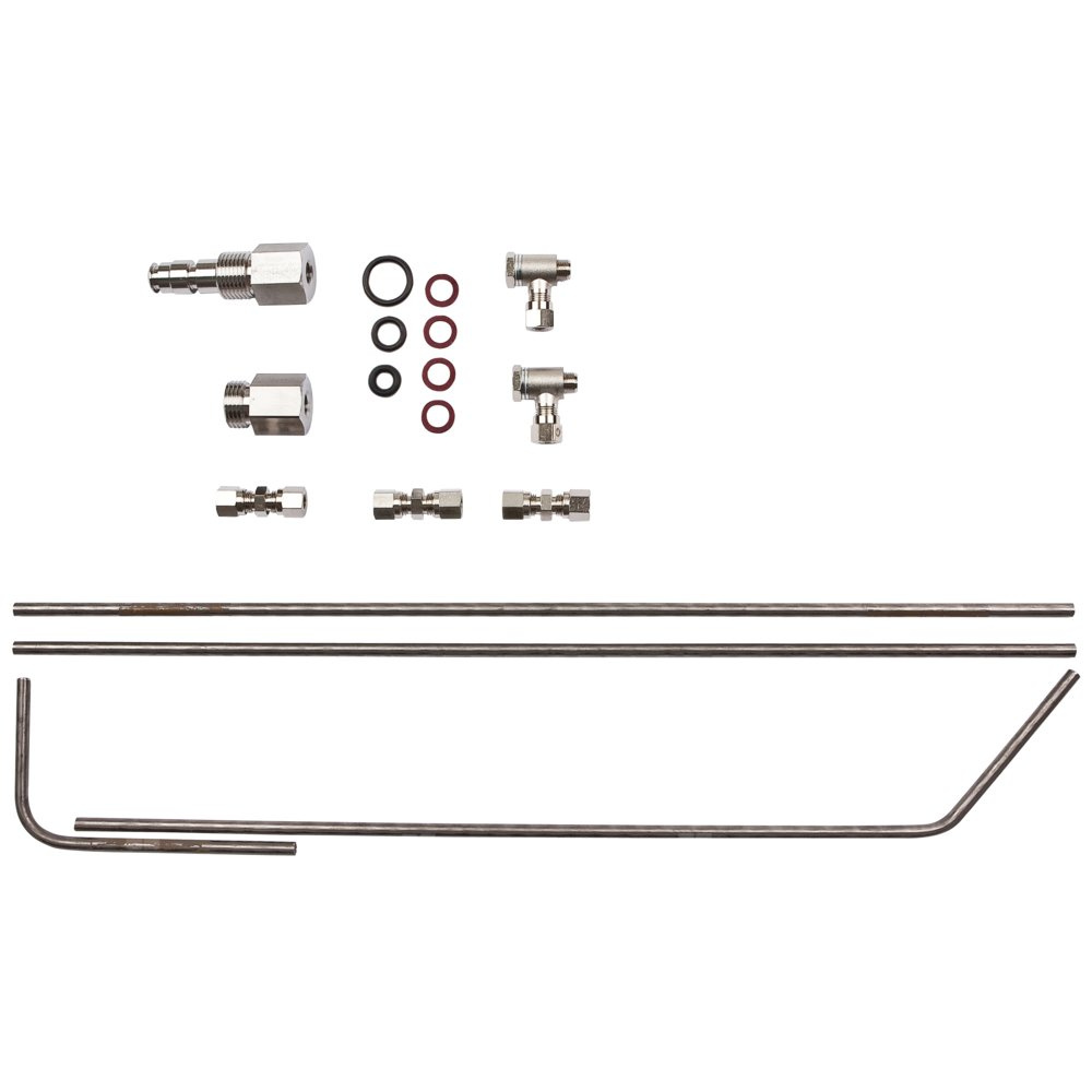 Zestaw zawiera wszystkie elementy niezbędne do montażu kompletnego rurociągu bypasu.