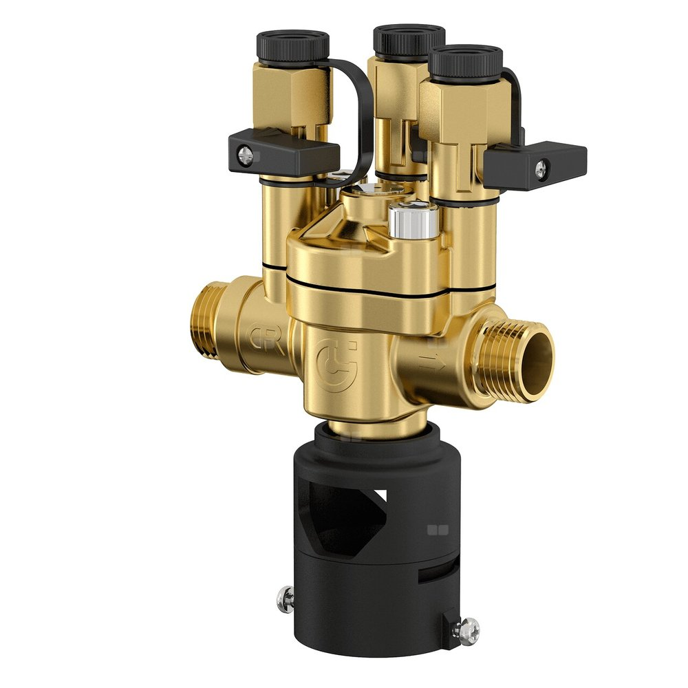Rozdzielacz systemów do automatów utrzymujących ciśnienie sterowanych za pośrednictwem pomp w instalacjach grzewczych i chłodniczych. Wraz z filtrem siatkowym, złączami śrubowymi i zaworami odcinającymi. Z certyfikatem DVGW.